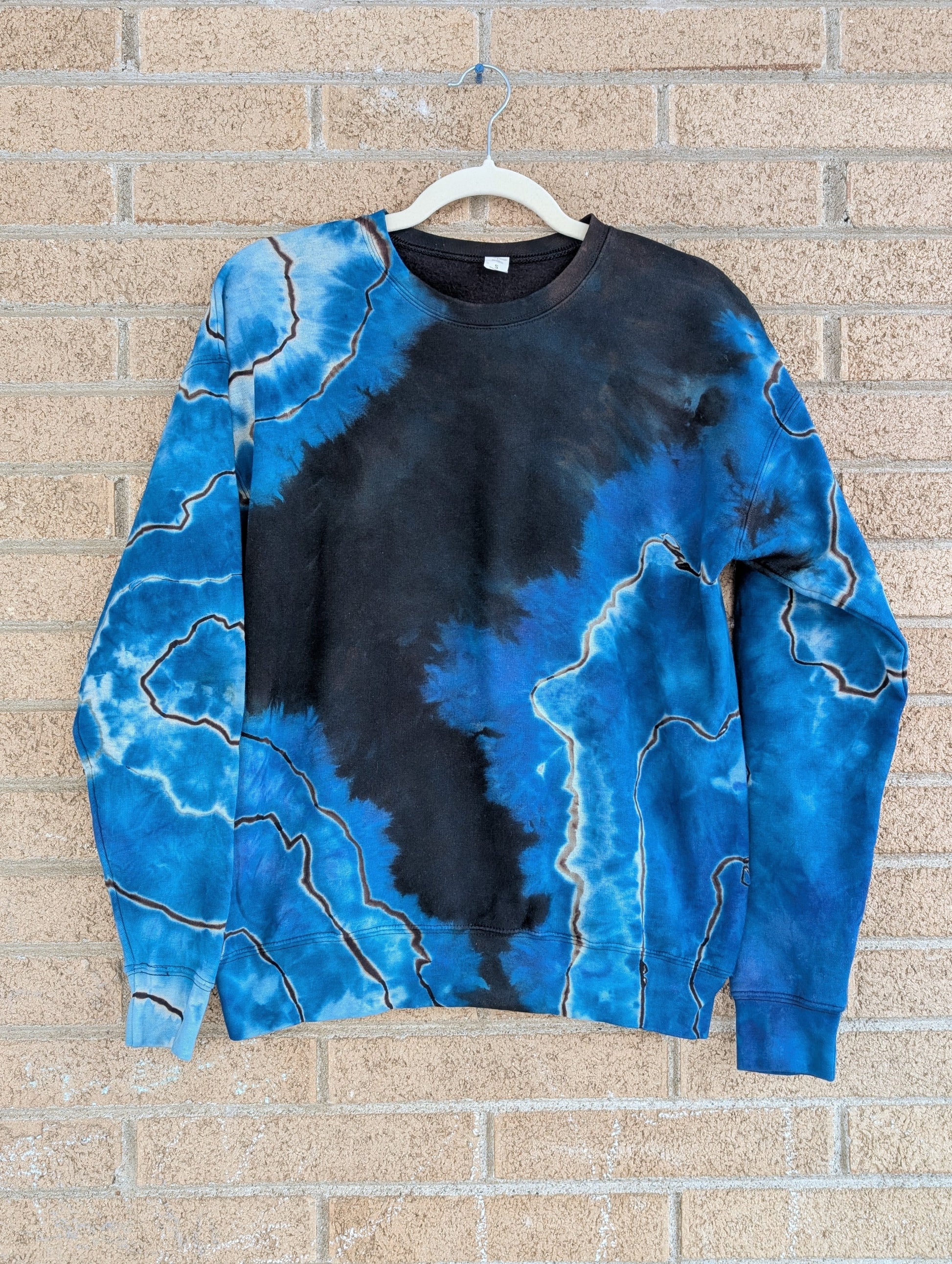 Custom design: black reversed geode tie with blue overlay Iced dyed
